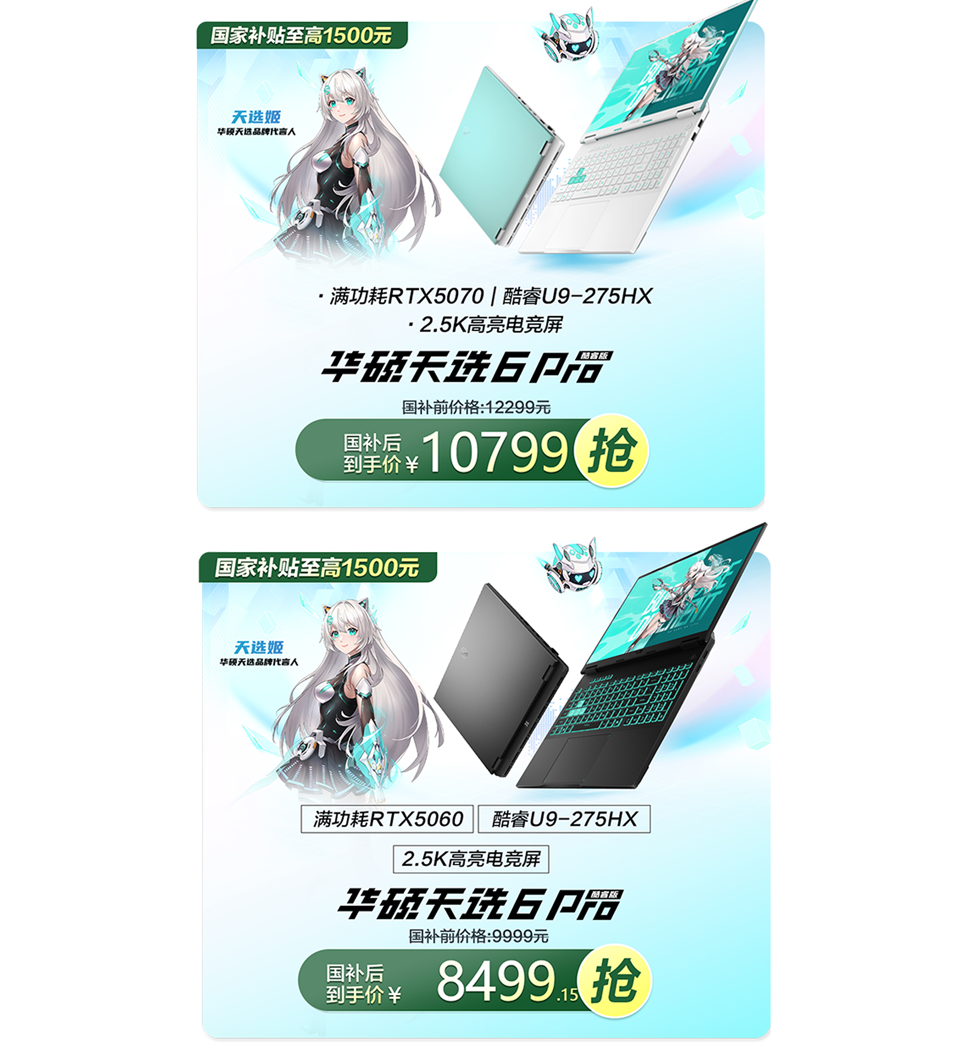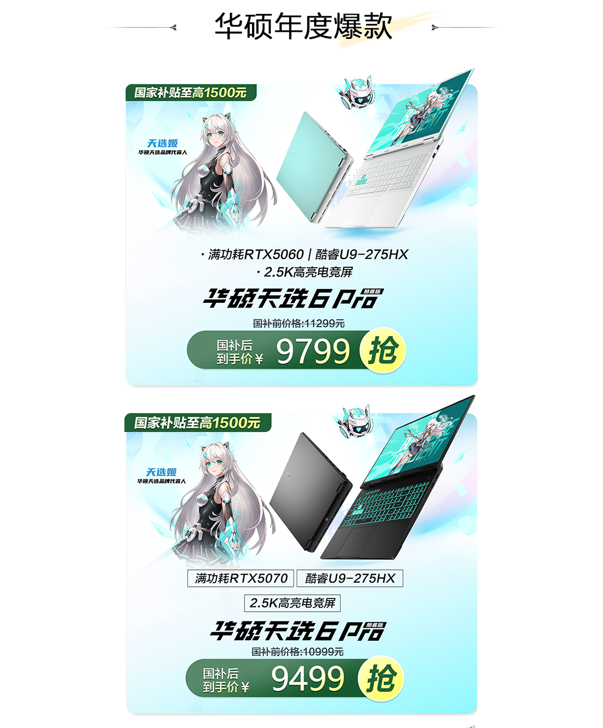 华硕天选5 Pro 14核酷睿i7 16英寸电竞游戏本 笔记本电脑(i7-13650HX 16G 1T RTX4050 16:10 2.5K 165Hz高色域)青