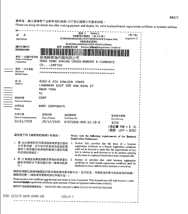 网络食品交易第三方平台备案凭证| 经营证照| 互联网违法和不良信息举报邮箱:kfpt-yy@cnsuning.com| 举报电话:02566996699-865948