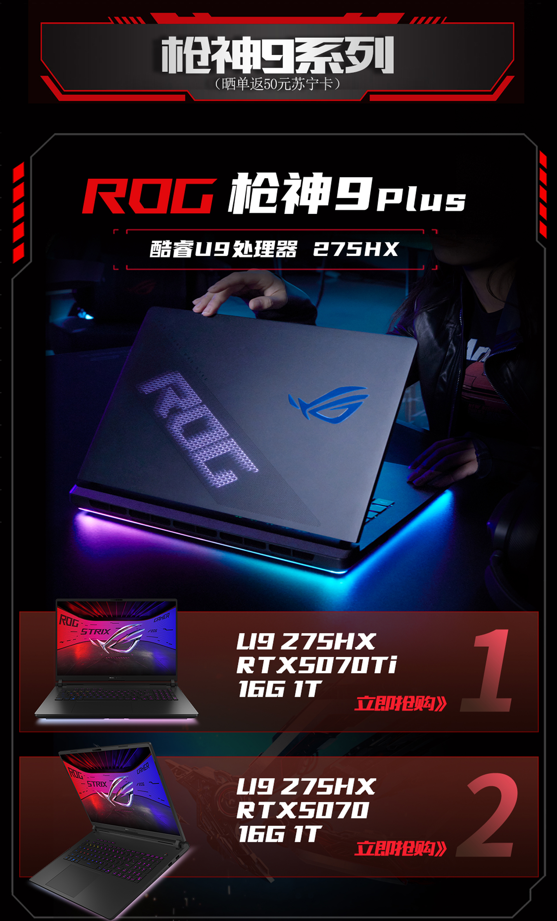 ROG枪神9 Plus 超竞版 酷睿U9 18英寸 游戏笔记本电脑(U9 275HX RTX5080 32G 1T 2.5K 240Hz MiniLED)