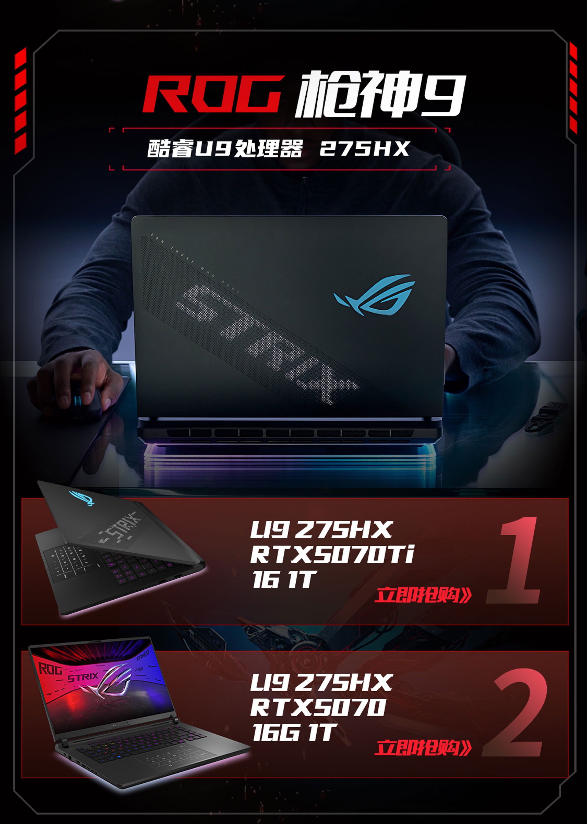 ROG枪神9 超竞版 酷睿U9 16英寸 游戏笔记本电脑(U9 275HX RTX5080 32G 1T 2.5K 240Hz MiniLED)
